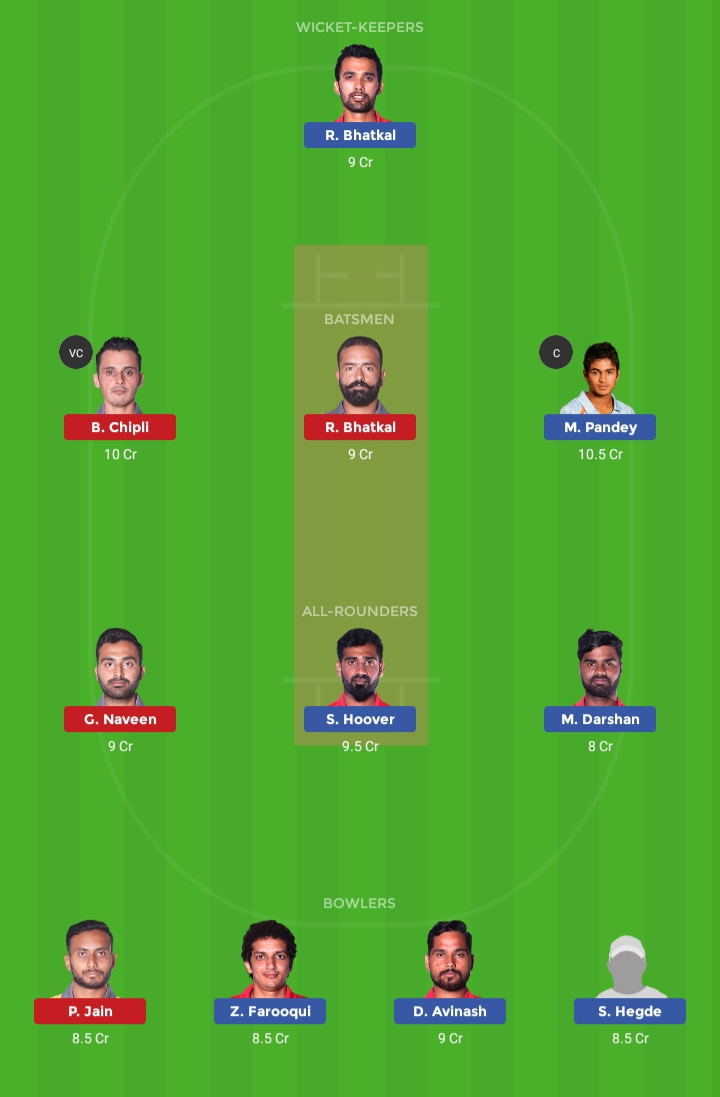 Belagavi Panthers – Ravikumar Samarth, Stallin Hoover, Dikshanshu Negi, Manish Pandey (c), Abhinav Manohar, Shubang Hegde, Mir Kaunain Abbas (Wk), Ritesh Bhatkal, Avinash D, Darshan MB, and Zahoor Farooqui